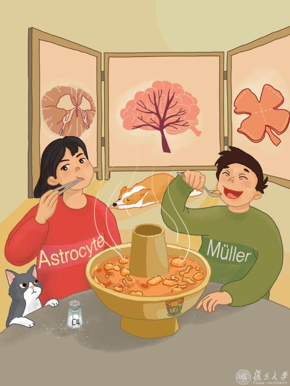 星形胶质细胞和Müller胶质细胞在大快朵颐吃火锅(小胶质细胞碎片)。