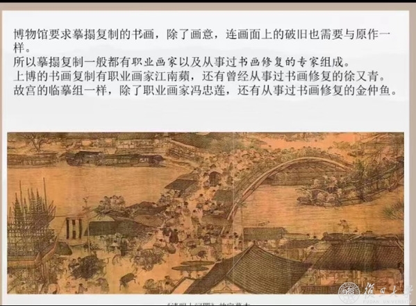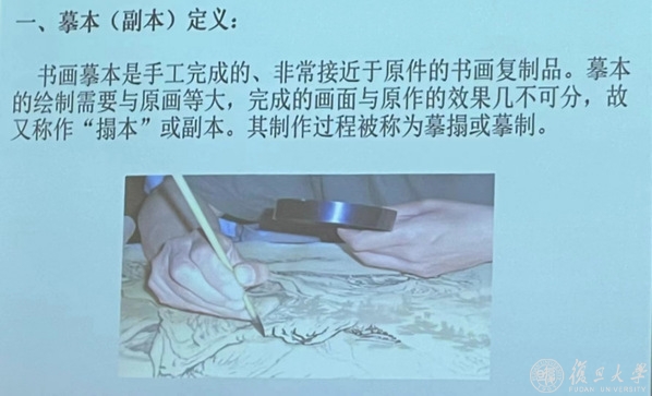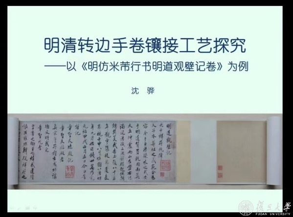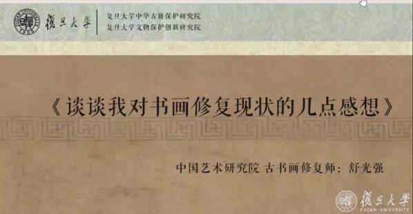 沈亚洲先生将中国书画摹搨与修复的悠久历史向大家娓娓道来,摹搨技术早期是为了制作复制品替代真迹陈列展览,以达到对真迹进行保护的作用。现今,传统书画修复与摹搨这种古老的技艺开始在高校中用现代化的教育模式传承技艺,相信有优秀的学生、有强大的现代科技手段,一定会培养出高层次的新一代书画保护人才。本场还有中国艺术研究院舒光强先生、上海博物馆褚昊先生、沈骅先生、华东师范大学施錡教授作报告。