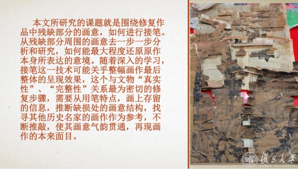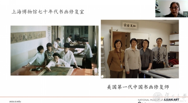 第二场研讨会由复旦大学文博系陈刚教授主持。上海博物馆资深书画修复师/复旦大学文物保护创新研究院特聘专家孙坚女史作为本场第一位汇报人进行汇报。孙坚女史作为行业内资深专家,将自己有关书画装裱前定方案的心得体会与大家分享。作为一名书画修复师,自己能够通过这些历代的书画作品与古人进行对话是一件幸运的事情。