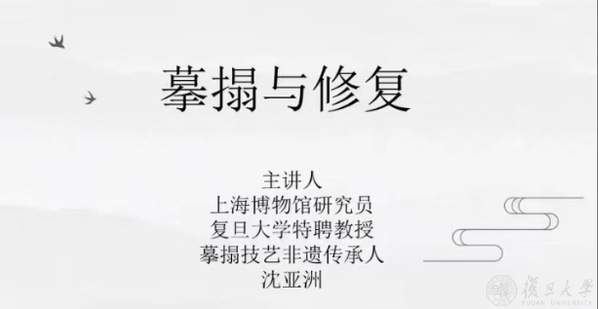 11月15日,首届传统书画修复与摹搨论坛在复旦大学光华楼东辅楼101会议室举行。中华古籍保护研究院、文物保护创新研究院院长杨玉良,复旦大学图书馆馆长陈引驰,文科科研处副处长罗长远,文物保护创新研究院特聘专家、上海书画摹搨非遗传承人沈亚洲先生,上海图书馆“上海工匠”、中华古籍保护研究院行业导师张品芳女史等共同出席开幕式。