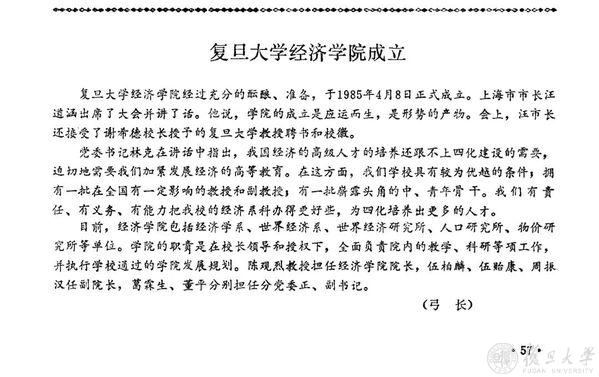 春风化雨万峥嵘,作为复旦经济学科的母体,复旦经济学系栉风沐雨、枝叶繁茂,创造了中国教育史上许多个“第一”——1979年,成立全国高校中第一个世界经济系;1980年,经济学专业成为全国第一批硕士学位授予点;2002年,金融研究院成立,挂靠经济学院,是国内高校中第一家跨学科综合性金融研究教育机构……