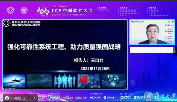 第四个特邀报告由华东师范大学蒲戈光教授主持。中国工程院王自力院士给大家带来了题为“强化可靠性系统工程、助力质量强国战略”的大会报告。该报告围绕“质量强国”战略需求,介绍了“三全质量观”以及强化质量设计的“质量技术变革观”,同时重点阐述了可靠性系统工程方法以及软件可靠性工程的代表性关键技术与创新发展。最后,报告从模型化、智能化、微观化等方面阐述了可靠性系统工程的未来发展趋势。