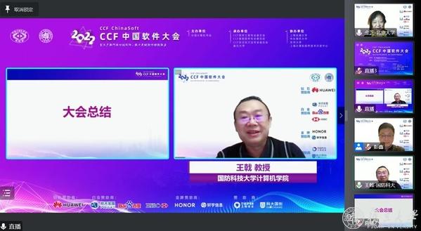 大会共同主席、CCF形式化方法专委主任王戟教授进行大会总结。他提到CCF中国软件大会是第一次纯线上会议,在会议组织团队的精心策划、精心设计、多方协调下,大会得以顺利召开。大会经过三年的发展,已经形成了一套成熟的模式,其中既有院士专家报告又有丰富多彩的分论坛活动,特别是工业论坛与教育论坛有了显著的进步。CCF中国软件大会已经进入中国科协高水平重要学术会议列表,希望软件界的同仁们能够共同努力营造一个交流发展合作的平台。