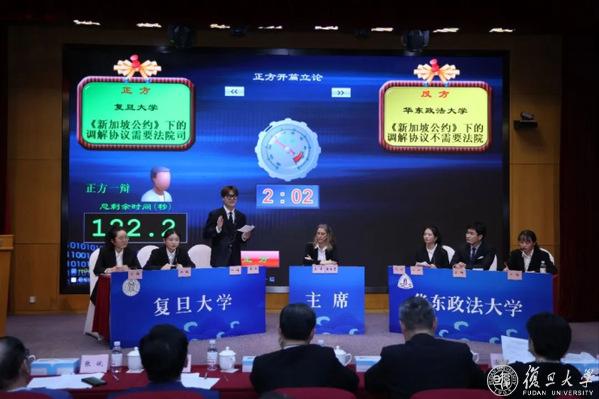 决赛当日,英文赛两支队伍分别围绕“《新加坡公约》下的调解协议是否需要法院司法审查”展开辩论。我方从司法审查的定性出发,结合《新加坡公约》项下的具体规定,结合中国的国情与实践特色,充分展开并论证了法院司法审查的必要性,最终荣获英文决赛冠军。