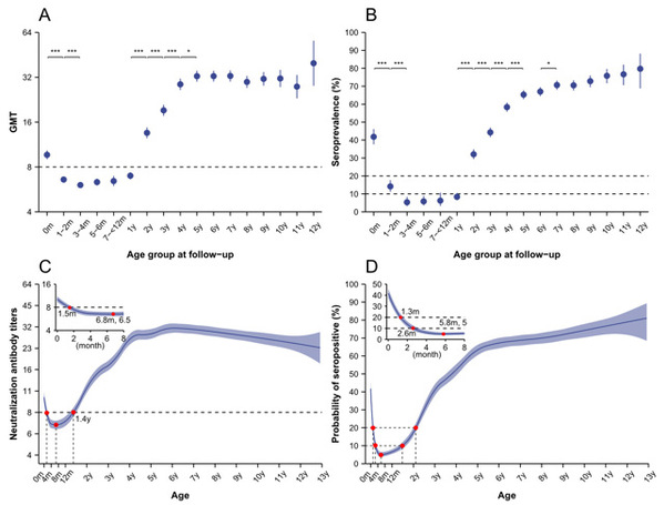 近期,复旦大学公共卫生学院余宏杰课题组在柯萨奇病毒A16型(CVA16)母传抗体及其自然感染的血清流行病学研究领域取得进展,研究结果以“The transfer of maternal antibodies and dynamics of maternal and natural infection‑induced antibodies against coxsackievirus A16 in Chinese children 0–13 years of age: a longitudinal cohort study”为题,于11月9日在线发表在BMC Medicine。研究发现母亲CVA16中和抗体可通过胎盘有效地传输给胎儿,但新生儿出生后抗体迅速衰减。40%-95%的儿童在6月龄到5岁期间依然对CVA16易感,应当纳入为CVA16疫苗的目标免疫人群。为降低0-5岁儿童(尤其是1岁组儿童)的手足口病发病率,同时为避免母传抗体对疫苗效应的潜在干扰,1.5月龄至1岁期间是CVA16疫苗的最佳免疫时间。本研究为CVA16疫苗研发提供了详细的基础信息,对预防和控制手足口病尤其是制定CVA16疫苗免疫策略具有重要科学意义。
