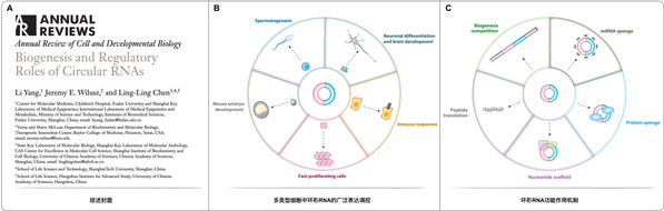 近期,复旦大学生物医学研究院杨力研究员受邀与国际同行在Annual Review of Cell and Developmental Biology期刊正式发表了题为“Biogenesis and Regulatory Roles of Circular RNAs”的长篇年鉴综述论文。该论文从同类型环形RNA的研究历程入手,将众多同类型的环形RNA依据其生成加工机制进行了系统分类,并针对最主要的反向剪接环形RNA(circular RNA from back-splicing of exons,circRNA)研究进展进行全面梳理和总结。