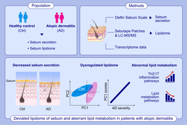 复旦大学附属华山医院皮肤科李巍教授团队首次通过脂质组学研究揭示了皮脂腺功能失调可能参与了特应性皮炎的发病机制,为探索特应性皮炎防治策略提供了新思路,最新研究成果近期在免疫/变态反应学权威期刊Allergy(《过敏》)在线发表。研究首次从脂质组学层面揭示了特应性皮炎患者皮脂腺脂质的成分特征,发现皮脂腺的功能失调可能参与了特应性皮炎的发病机制,为探究特应性皮炎防治策略提供了新思路。