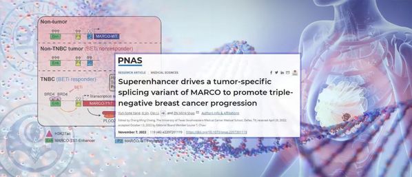 RNA是细胞传递基因信息的重要“信使”,一旦细胞发生癌变,便很有可能产生异于常态的RNA,即“肿瘤特异性转录本”。近日,从复旦大学附属肿瘤医院传来消息,该院邵志敏教授、江一舟教授团队携手黄胜林教授团队,发现在三阴性乳腺癌的细胞中存在大量“肿瘤特异性转录本”,并据此成功绘制出目前世界首个三阴性乳腺癌“肿瘤特异性转录本”图谱;研究团队还鉴定出其中高频表达的全新“肿瘤特异性转录本”MARCO-TST,阐明了超级增强子能够激活该转录本在肿瘤中的表达,首次证实BET抑制剂可作为三阴性乳腺癌患者的潜在治疗选择。这意味着长期以来缺乏有效治疗策略的三阴性乳腺癌,有望获得新的治疗靶点。该项研究成果11月8日在线发表于国际权威期刊《美国科学院院报》(PNAS)。