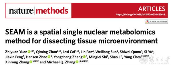该成果是该课题组基于前期空间组学相关工作的又一拓展。前期工作提出了一个空间代谢组的计算分析方法,突破了现有方法的空间分辨率极限,实现单细胞级别的组织微环境分析。该工作于2021年以《SEAM是一个单细胞核空间代谢组学方法》(“SEAM is a spatial single nuclear metabolomics method for dissecting tissue microenvironment”)为题在《自然·方法》(Nature Methods)杂志上发表,原致远为共同第一作者。