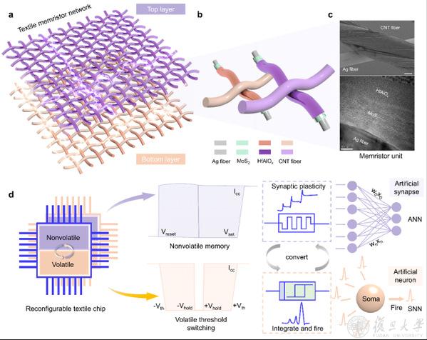 近日,复旦大学微电子学院陈琳教授团队成功在低功耗神经形态电子织物领域获得原创性成果,工作进展以“Reconfigurable neuromorphic memristor network for ultralow-power smart textile electronics”为题发表在Nature Communications。