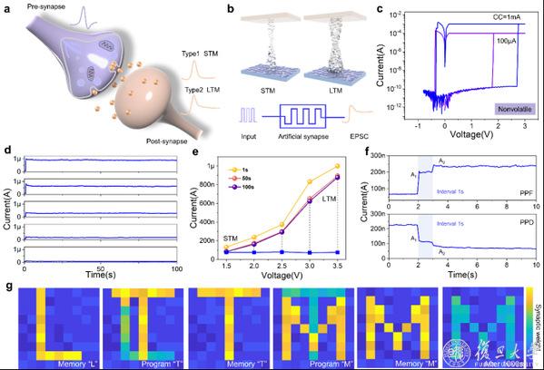本工作提出了一种同时具有人工突触和神经元功能的可重构神经形态织物忆阻器件网络,可以在同一单元实现神经突触可塑性和神经元发放功能,在降低神经元电路的复杂性方面表现出明显的优势。