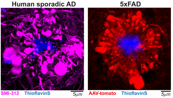 近日,脑科学转化研究院青年研究员袁鹏与美国耶鲁大学Grutzendler团队合作,于Nature在线发表文章“PLD3 affects axonal spheroids and network defects in Alzheimer’s disease”(1),发现阿尔茨海默症中β-淀粉样蛋白沉积周围存在大量的轴突球状体的膨大病变结构,它们阻碍神经信号传导,影响神经网络功能,而溶酶体蛋白PLD3可以作为调控此病变的分子靶点。