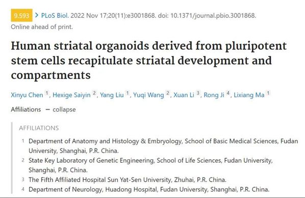 近日, 基础医学院解剖与组织胚胎学系马丽香老师和生命科学院赛音贺西格老师联合团队在Plos Biology 杂志上在线发表了题为“Human striatal organoids derived from pluripotent stem cells recapitulate striatal development and compartments”的研究成果。该研究报导了纹状体类器官中隔室样结构(matrix-striosome compartments)的存在,这是一种体内纹状体独特的空间组织模式。在构建纹状体类器官的基础之上,他们进一步测试了纹状体类器官的潜在应用:包括利用融合类器官在体外重现靶向纹状体投射,以及纹状体类器官衍生的体外疾病模型等。