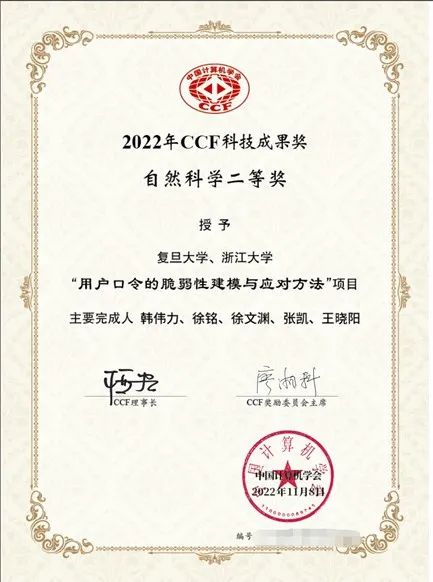 3.计算机科学技术学院章忠志、韩伟力等教授团队荣获2022年度中国计算机学会自然科学二等奖