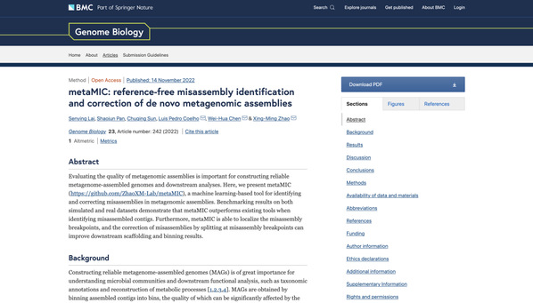 1.类脑智能研究院赵兴明教授团队开发宏基因组组装错误识别与矫正算法metaMIC