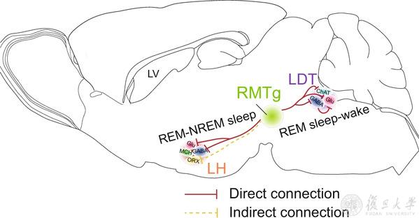 研究结果揭示了RMTg GABA能神经元抑制REM睡眠的必要性及其控制REM睡眠转换的神经通路,丰富和发展了REM睡眠调控的神经网络机制。如果采用声、光、电等非侵入性手段对此类神经元及其不同的神经通路进行干预,将对临床上治疗精神疾病相关REM睡眠障碍提供新手段。