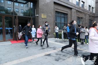 图16. 师生们得到安保人员“现场已处置完毕、请有序返回”的通知后,返回系楼