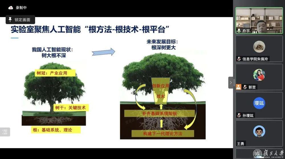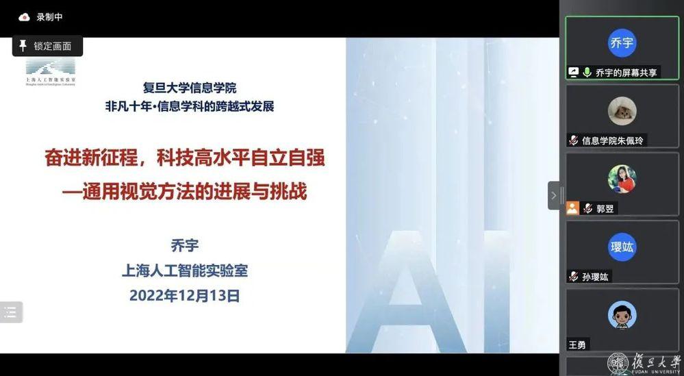 郭翌表示,乔宇教授从人工智能的历史、发展现状、团队研究方向与成果等方面详细介绍了人工智能技术,紧扣党的二十大报告中关于科技自立自强的论述,展现了乔宇教授团队在人工智能领域的研究成果,以及团队成员为国家科技自立自强所作出的不懈努力。希望未来能够与上海人工智能实验室在技术、人才、就业等方面展开全方位合作,也希望乔宇教授在春暖花开之时,能够来到复旦校园,与信息学院师生们近距离交流互动。