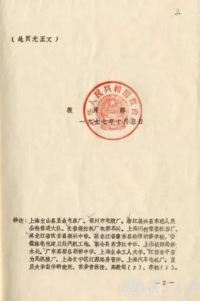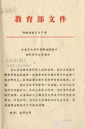 1977年,教育部发布文件《为复旦大学苏步青教授建议招收研究生发通知》