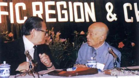 1988年6月苏步青与江泽民同志在“太平洋地区经济发展与中国国际研讨会”上交流