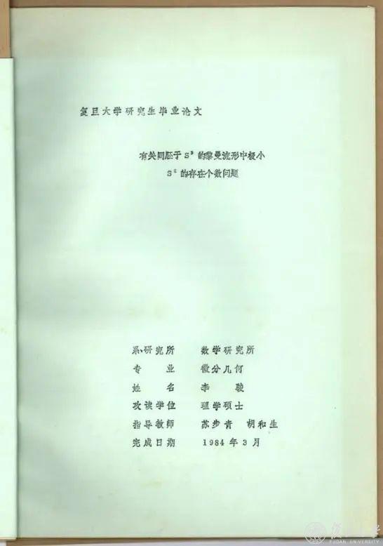 李骏的硕士毕业论文由苏步青与胡和生联合指导完成