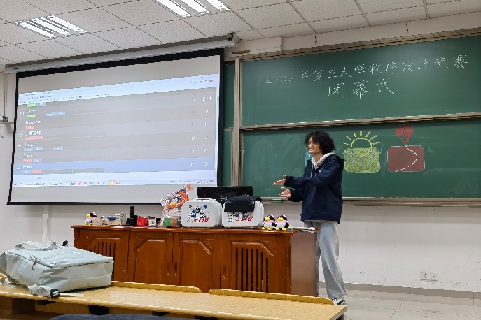 闭幕式由程序设计竞赛队的刘皓蓝主持,计算机科学技术学院副院长吴杰和程序设计竞赛队总教练孙未未教授现场致辞并担任颁奖嘉宾。