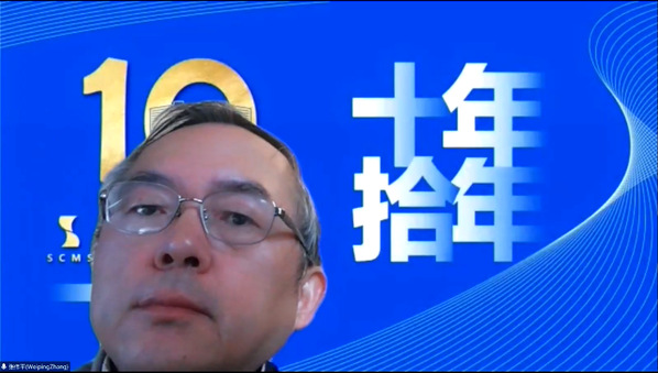 张伟平表示,上海数学中心十年发展成就有目共睹,在衷心祝贺的同时,也盼望上海数学中心和陈省身数学研究所能够继续相互支持、共同进步。他祝愿上海数学中心迈上新台阶,迈入新境界,在引领上海数学发展的同时,与全国数学界一起,为实现“中国在21世纪成为数学大国、强国”的陈省身猜想而奋斗。