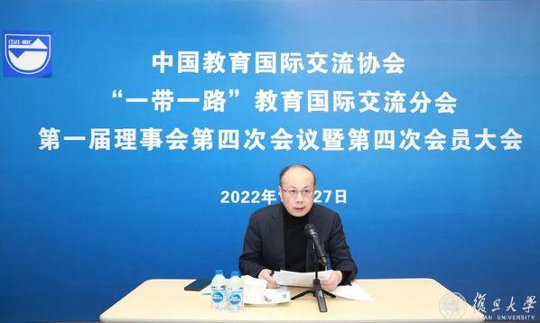 12月27日下午,中国教育国际交流协会“一带一路”教育国际交流分会(下文简称:分会)第四次理事会暨会员大会在复旦大学智库楼以线上线下相结合的方式举行。