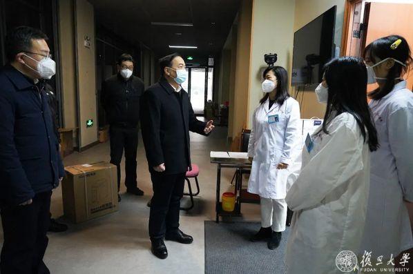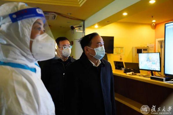 来到枫林路333号,袁正宏一行慰问了健康驿站进驻医生、工作人员和安保同志,查看了公共区域的实时录像,了解健康驿站日常运营管理、隔离观察人员转入与转出及接受诊疗等情况。“同学们住到健康驿站,是对学校的信任,拜托各位一定帮我们照顾好同学们。”