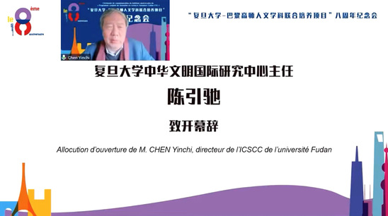 复旦大学中华文明国际研究中心主任陈引驰致开幕辞。他简短回顾了人文学科联合培养项目八年来的历史与成果:来自中文系、历史系、哲学学院与外文学院的103位复旦学生通过该项目接受了系统的法语学习和学术训练,其中又有近一半的学生已赴或将赴法国攻读博士学位。他感谢参与本项目的法方三十余名学者与复旦大学来自四个院系的众多同仁的倾心投入。
