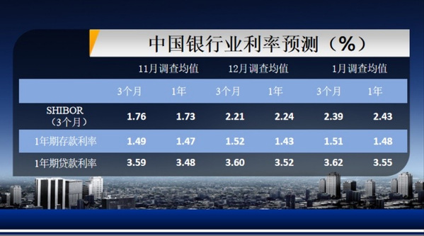 3个月期限的SHIBOR短期内(3个月)利率的预期为2.39%,1年后的SHIBOR的利率的预期为2.43%,与上月数据相比,专家对SHIBOR利率的短期预期上调0.18%,长期预期上调0.19%。