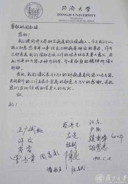 令我感慨但又欣慰的是,一次在我给学生讲完公开课后,一位男青年奔向我的讲台,含着泪水告诉我,他以优异的成绩考上了公务员的岗位,但是因为 HBsAg阳性,未被录取。他问我,如果他通过考试,我们是否会录取他为研究生?我回答说:“当然, 欢迎你参加攻克乙肝的队伍”。后来他如愿以偿,来到了我们实验室。完成学业后,他出国深造,继续从事微生物学研究,还不忘回国后,特地向实验室送来了鲜花。