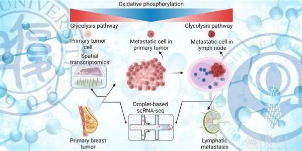 复旦大学附属肿瘤医院乳腺外科副主任余科达教授带领团队,联合哈尔滨医科大学附属肿瘤医院、中国医科大学附属第一医院,开展乳腺癌单细胞转移机制和特点研究并全球首次揭示:乳腺癌早期转移亚群在转移过程中氧化磷酸化通路和糖酵解通路活性的互相演变,发现该亚群在乳腺癌原发肿瘤的空间分布特征,揭示氧化磷酸化对预测乳腺癌淋巴结转移的潜在价值。这意味着,未来临床上可针对该通路甄别那些有淋巴结转移风险的乳腺癌患者,并开发特定的药物和治疗靶点,进而实现降低早期乳腺癌转移发生几率。近日,Advanced Science (先进科学) 在线发表这一发现。