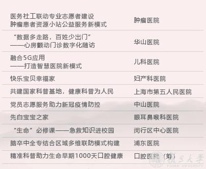 每年的复旦上医“十佳百优”,全面展现复旦各附属医院奋战在不同岗位的成绩突出的个人和团队,是医院优秀的临床、管理、医疗援建以及服务品牌、优秀创新团队的大集结。