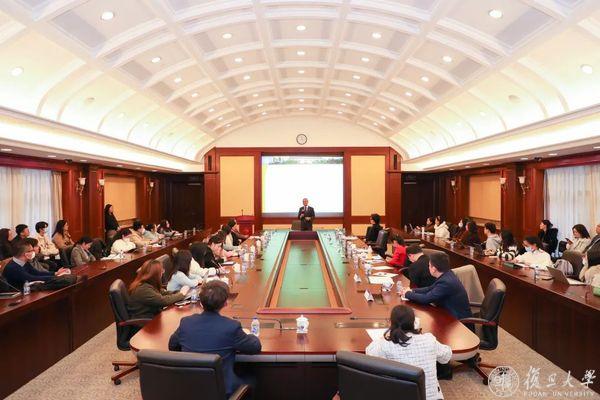 常启德演讲前与学校领导及相关专家会面交流,期待复旦大学与联合国及其专门机构建立更紧密的伙伴关系。