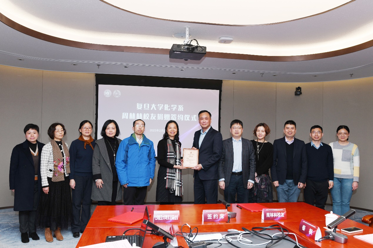 2023年2月20日,化学系周林林校友捐赠签约仪式在邯郸校区隆重举行。化学系77级校友、谱润投资董事长周林林,谱润投资行政主管王丹红,复旦大学常务副校长、上海复旦大学教育发展基金会理事长许征,复旦大学对外联络与发展处副处长章晓野,化学系党政班子成员等出席捐赠签约仪式。仪式由化学系党委书记马蔚纯主持。