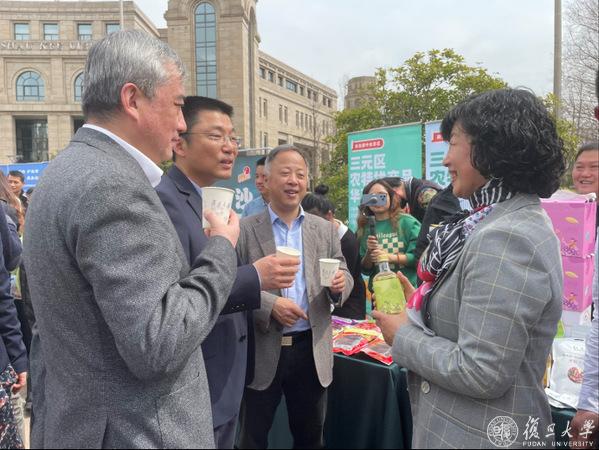 首场活动的成功举办为全年的“百县百品”六进活动聚集起人气,为学校、杨浦区及上海市高质量完成年度消费帮扶工作取得良好开局,与区、市联合举办活动也是学校进一步融入上海、服务国家战略的重要载体。现场的展销活动持续三个多小时,我校师生热情参与,17家参展企业累计销售额达20余万元。