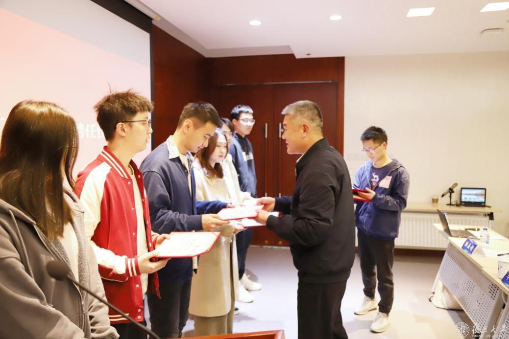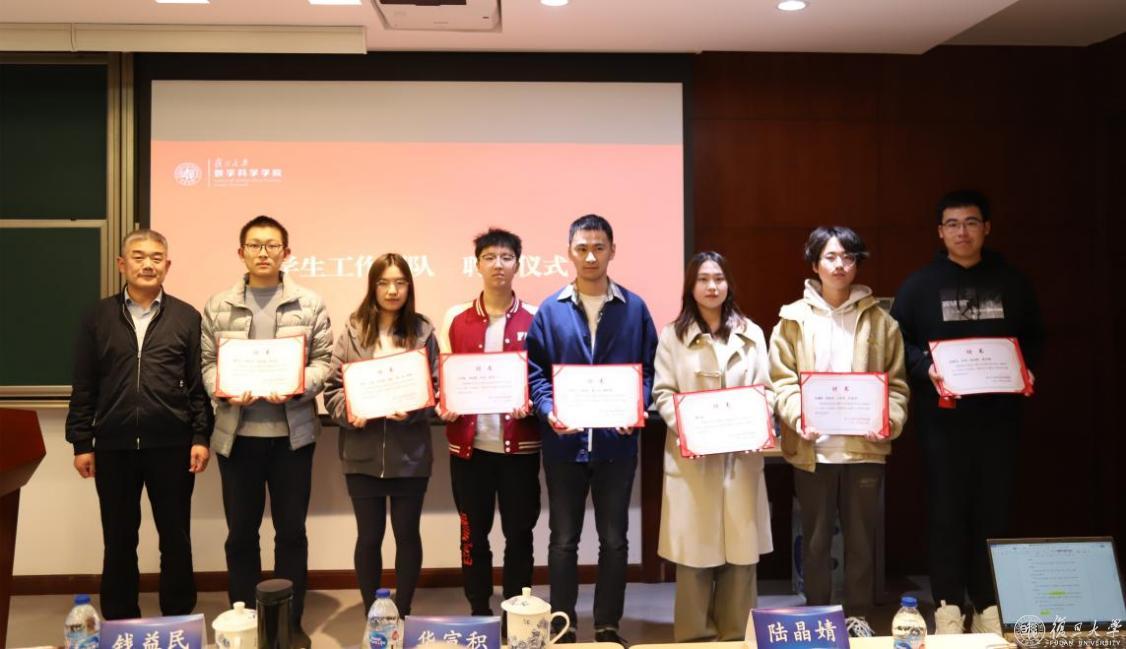 经过前期的报名和筛选,27位数院青年志愿者参与到《复旦大学数学学科史》编撰项目学生团队中。根据本次项目工作安排,学生分成六组,分别负责不同章节的资料收集、整理、撰写工作。在陆晶婧正式宣布学生团队名单后,由王光临为学生工作团队代表颁发聘任证书。