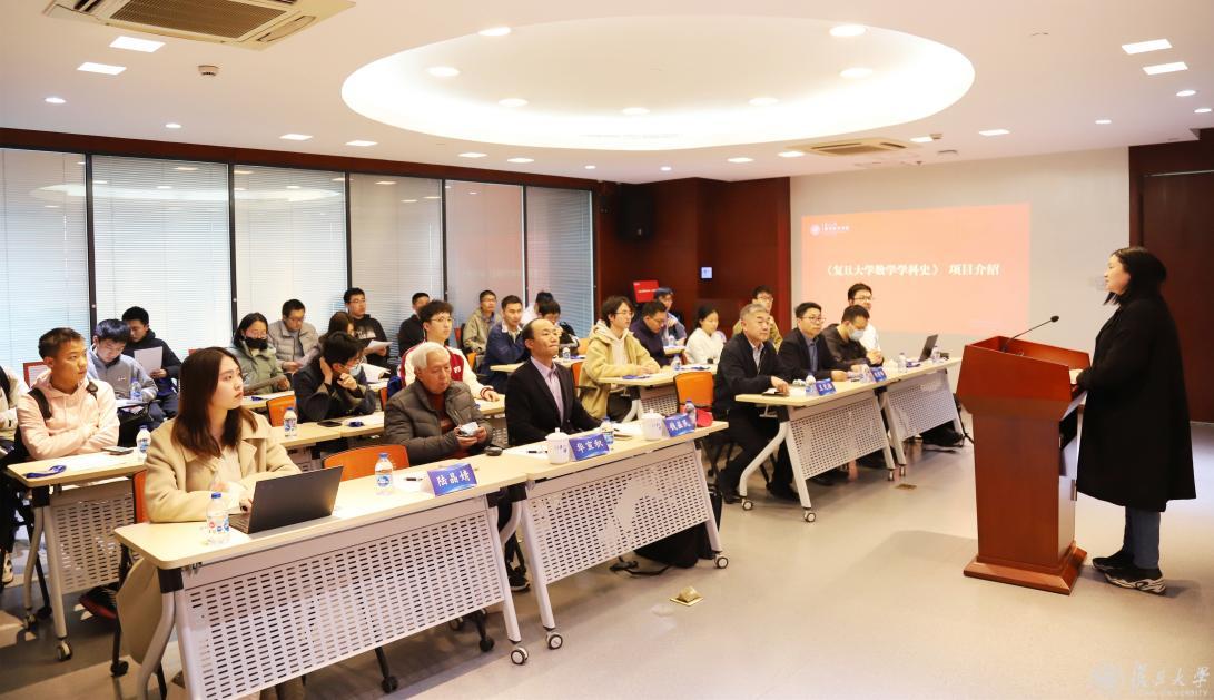 为全面深入梳理学科发展脉络,展现复旦数学优良传统作风,展示数学学科一流办学成果,3月14日下午,在第四个“国际数学日”到来之际,数学科学学院在光华楼东主楼2201会议室举行《复旦大学数学学科史》编撰项目启动会。校史研究室主任钱益民,数学科学学院退休教师、原数学系党总支书记华宣积,数学科学学院党委书记王光临,数学科学学院党委副书记、纪委书记刘建峰,以及编撰项目学生团队等30余人参加了会议。数学科学学院党委副书记陆晶婧主持会议。