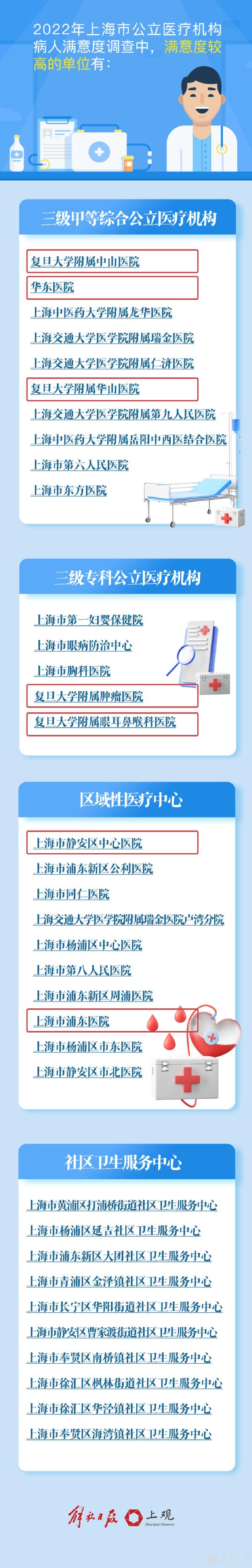 其中,附属中山医院、附属华山医院、附属肿瘤医院、附属眼耳鼻喉科医院、附属华东医院、附属浦东医院、附属静安区中心医院上榜!