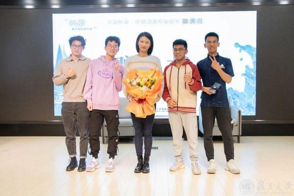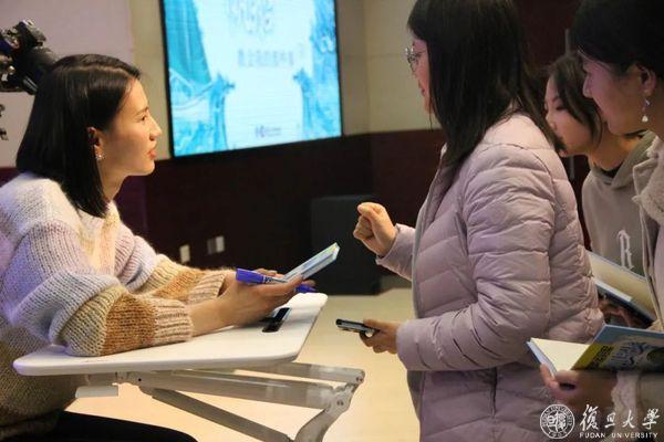 提问环节结束后,徐莉佳向复旦大学图书馆捐赠了书籍。复旦大学帆船协会的学生代表向徐莉佳献上了鲜花。