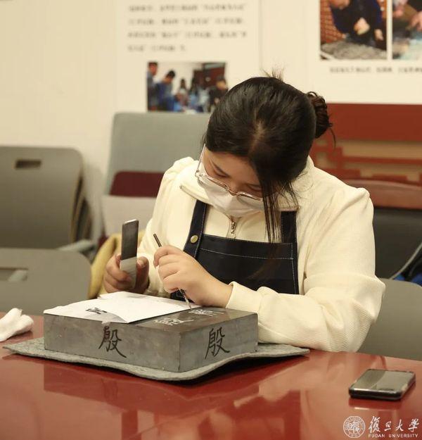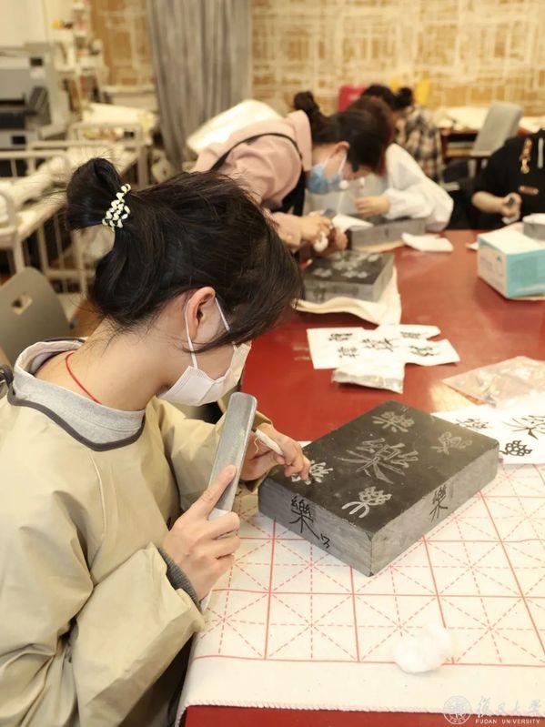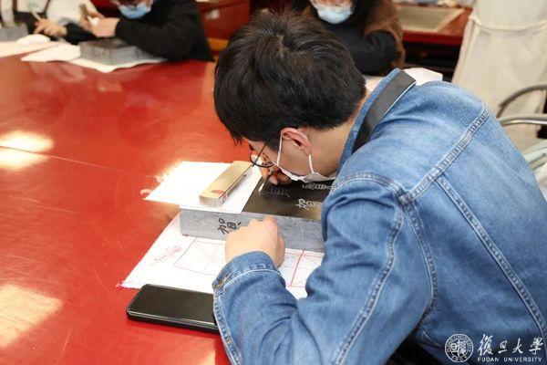 “你们今天有没有刻坏的石头需要找赵老师补救?”复旦大学图书馆馆员、文献修复师、“古籍修复基础实践”课程助教李燕笑问道。