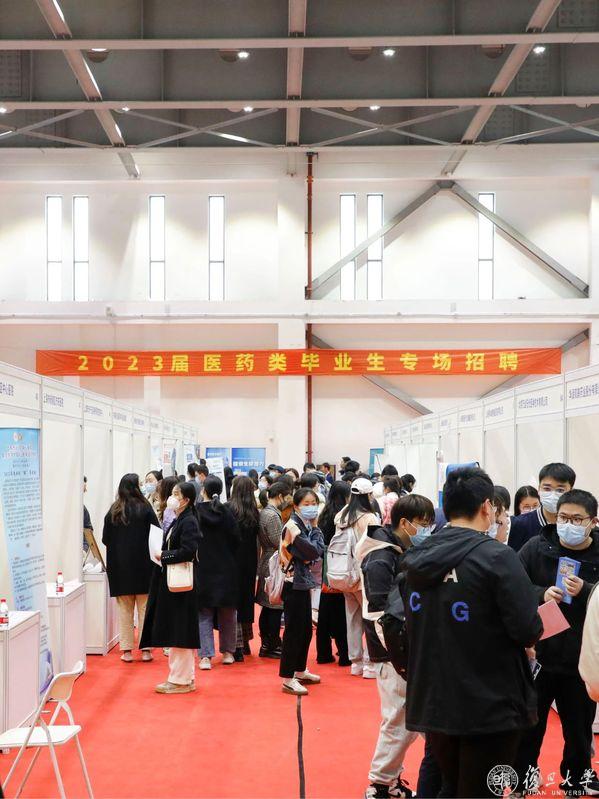 3月24日下午,复旦大学2023届医学(药)类毕业生专场招聘会在枫林校区学生体育活动中心举行。活动吸引到近120家用人单位,提供招聘岗位近700个,计划招聘总人数7000余人。招聘现场还专设简历门诊咨询台,供有需求的毕业生咨询。