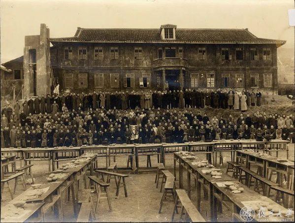 1937 年 12 月复旦师生到达重庆码头后的合影