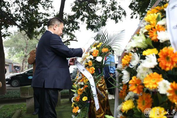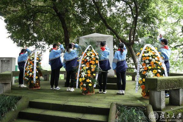 清明临近,复旦师生、校友代表为“寒冰墓”举行献花仪式。夏坝中学“寒冰班”学生敬献花篮,金力整理缎带,复旦师生、校友先后献花,共同悼念和缅怀抗战期间牺牲的复旦爱国师生。仪式由许征主持。