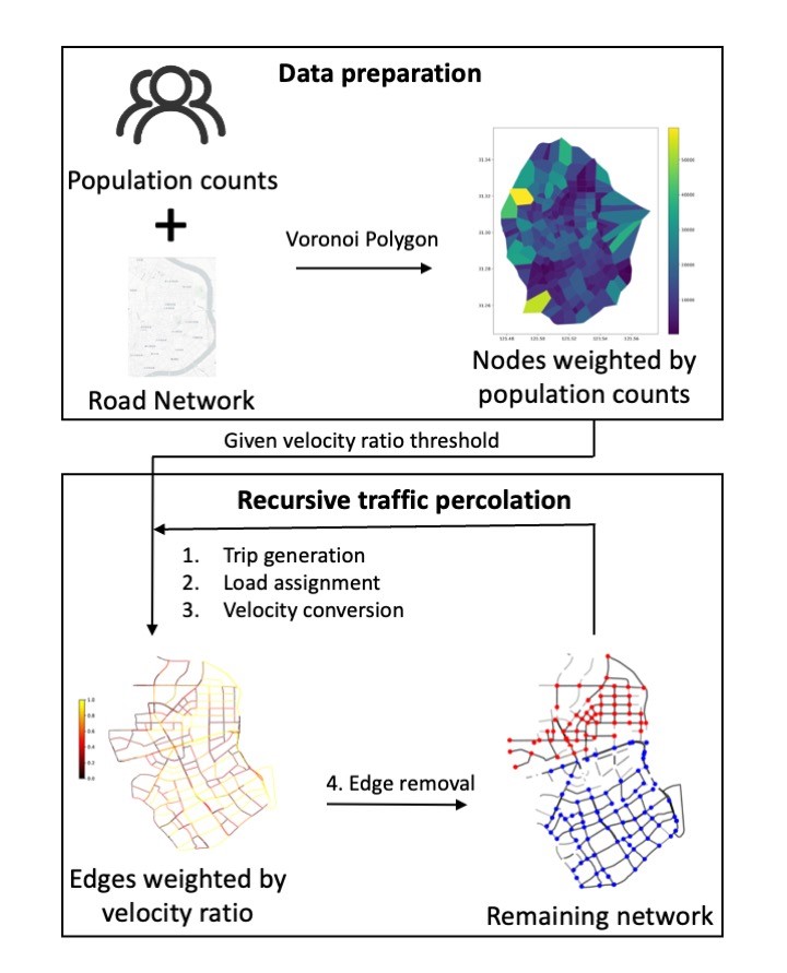 Science Daily报道说“这项研究交叉了物理科学和信息科学,是一个涉及智慧城市研究的创新模型。模型采用了渗流理论的改进形式。在构建模型时,考虑了上海现有的道路网络和人口分布,在不同的人口中心之间产生出行需求并分配到提供最短出行距离的道路上。每条道路上的交通负载被转换为速度。当某条道路上的交通流达到一个不可接受的低速度(渗流阈值)时,该道路就被视为功能失调,并从网络中删除。通过递归的方式重复这一过程,研究发现,城市交通系统的大规模级联故障是以一种突然和不连续的方式发生的,就像冰融化或水沸腾时突然发生相变一样”。(转载https://www.sciencedaily.com/releases/2023/03/230321112656.htm)