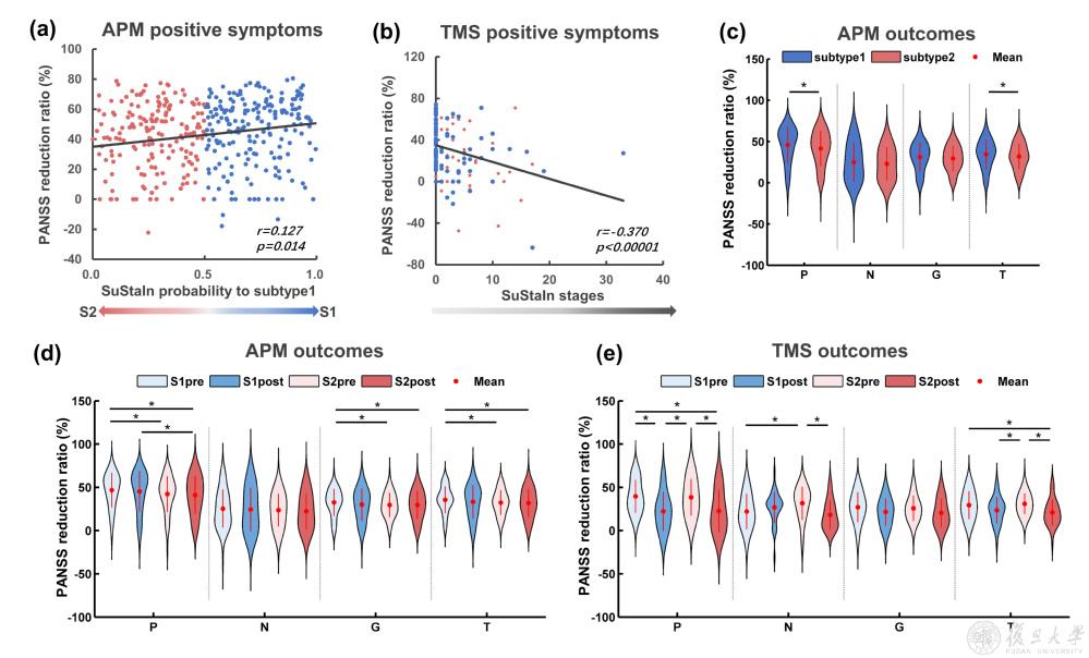 来自523名接受抗精神病药物(APM)或经颅磁刺激(TMS)的精神分裂症患者的纵向数据显示,APM结局与亚型的表型间个体差异有关(即药物治疗在语言亚型中更有效),而TMS结局与亚型的表型内个体差异有关(即无论是语言区亚型还是海马亚型,当患者处于“萎缩前期”阶段时,TMS结局更好)。