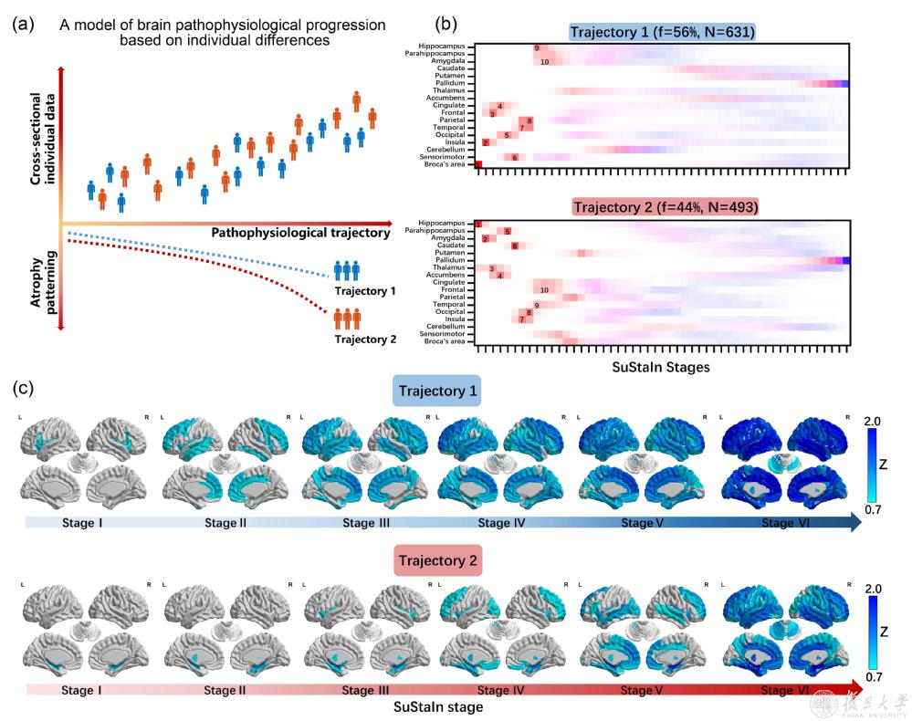 近日,复旦大学类脑智能科学与技术研究院冯建峰教授/程炜青年研究员团队联合国内外数十家医院,基于大规模脑影像数据(2000多名被试),利用数据驱动的人工智能算法(疾病进展模型),推演出精神分裂症发生、发展的全维度疾病演进轨迹,精准定位出精神分裂症大脑萎缩的两个起源(语言区亚型和海马亚型)。并且,通过对500多名患者的随访研究,探究药物治疗和TMS干预对不同亚型人群的治疗效果。