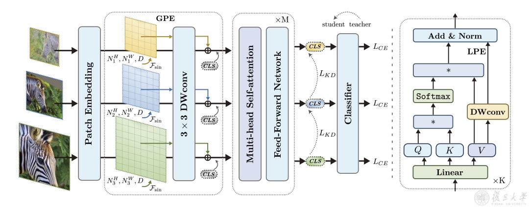 研究团队提出了一种视觉Transformer的多分辨率训练框架(ResFormer),将图像复制为不同的分辨率以计算分类损失,并在尺度一致性损失的监督下学习得到不同尺度之间的交互,以提高其对多分辨率,特别是未知分辨率的鲁棒性。ResFormer使用全局-局部的位置编码策略,以适应不同的分辨率。
