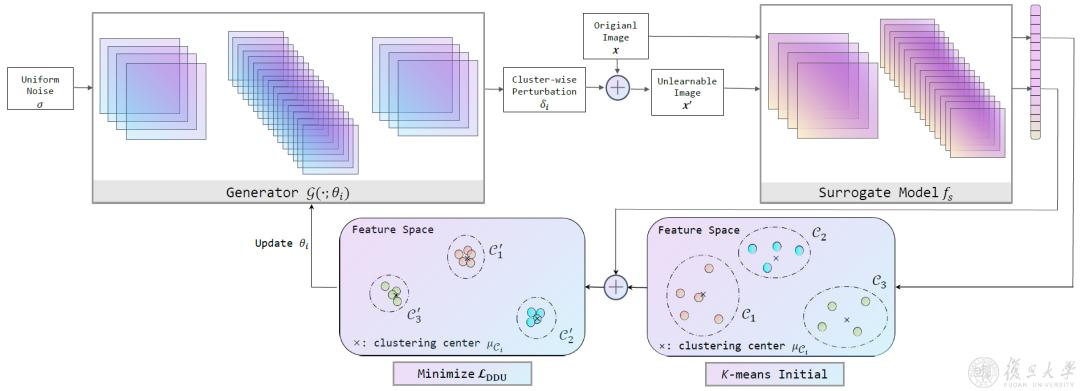 研究团队提出并推广一种更实用的“标签不可知”的假设,即黑客可能以与保护者完全不同的方式利用被保护数据。为了应对这一挑战,研究团队提出了不可学习的簇,以生成可以应用于“标签不可知”场景下的具备